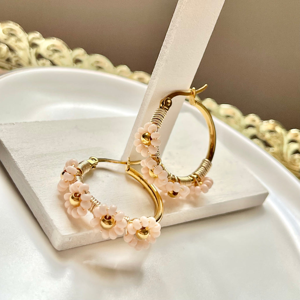 Arracadas flores beige.